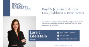 2023 is set to be an exciting year for our firm, starting with welcoming a new partner at Boyd & Jenerette P.A. We’re proud to announce Lara J. Edelstein as the firm’s newest partner. Lara has been a valuable member of the Boyd & Jenerette team since 2021 and has consistently proven her work ethic to us and, more importantly, to her clients. Based in the Boca Raton office, Ms. Edelstein focuses her practice on appellate proceedings and trial and litigation support. Ms. Edelstein has extensive experience in appellate law, having […]