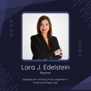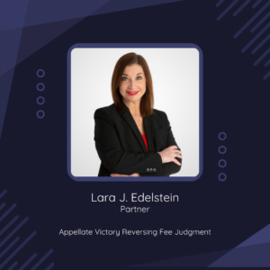 Lara Edelstein prevailed in an appeal of a fee judgment in a personal injury protection (“P.I.P.”) case. The medical provider filed suit against the insurance company to recover amounts due and owing under Florida’s No-Fault Law, section 627.736, Florida Statutes, and sought an award of attorney’s fees under section 627.428, Florida Statutes. After the insurance company conceded that it had underpaid the statutory interest, the trial court entered summary judgment for $104.55 in statutory interest. The insurance company objected to an award of attorney’s fees, but the trial court found […]