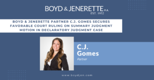 Boyd & Jenerette is pleased to announce that eight lawyers have been included in the 2025 edition of The Best Lawyers in America®. Since it was first published in 1983, Best Lawyers has become universally regarded as the definitive guide to legal excellence. Boyd & Jenerette, P.A. would like to congratulate the following lawyers named to 2025 The Best Lawyers in America® list: Michael J. Childers Recognized for Construction Law and Litigation – Construction Michael J. Childers is Board Certified in Construction Law by the Florida Bar and is AV® Preeminent Peer Review […]